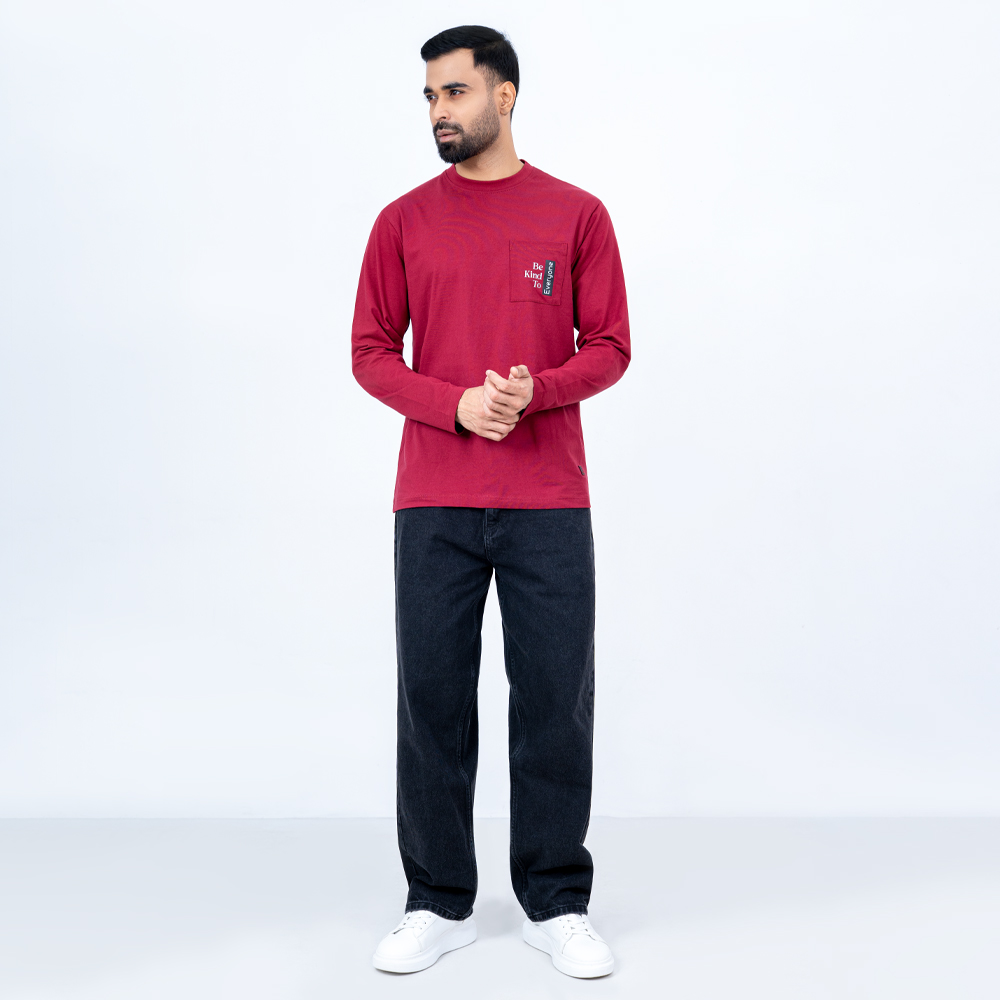 Richman Classic Full Sleeve Maroon T-Shirt With Pocket