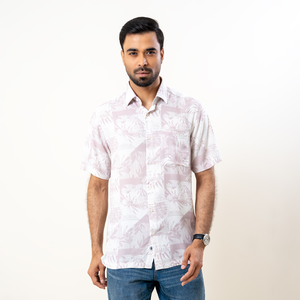 Infinity Men’s Half Sleeve White Printed Hawai Shirt