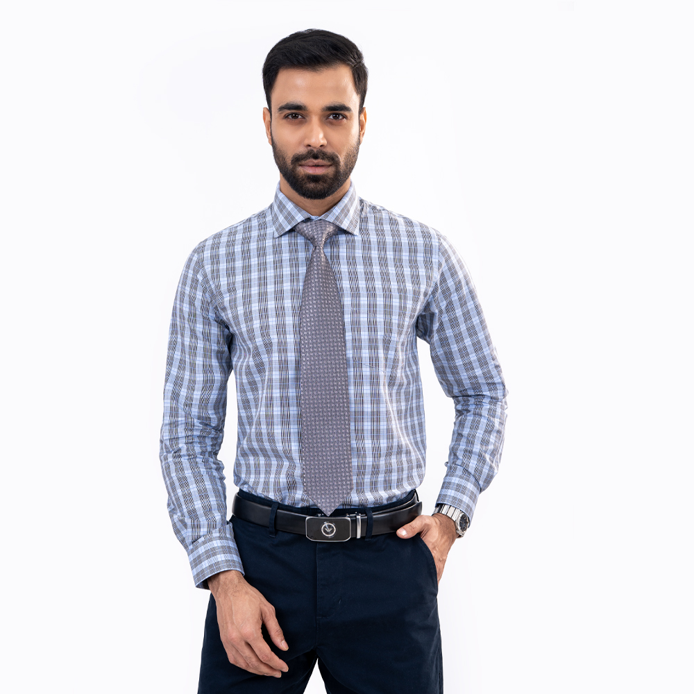 The slim fit cut creates a clean, tailored silhouette, while the sky check pattern adds a fresh and stylish touch to your outfit. Featuring long sleeves (LS) and a structured collar, this shirt is perfect for both formal and smart-casual occasions.