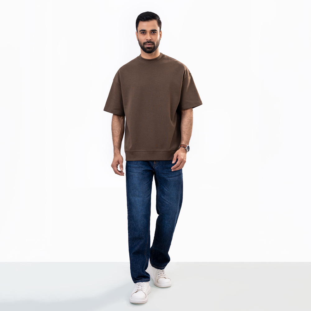 Richman Coffee Color Round Neck Drop Shoulder T-Shirt