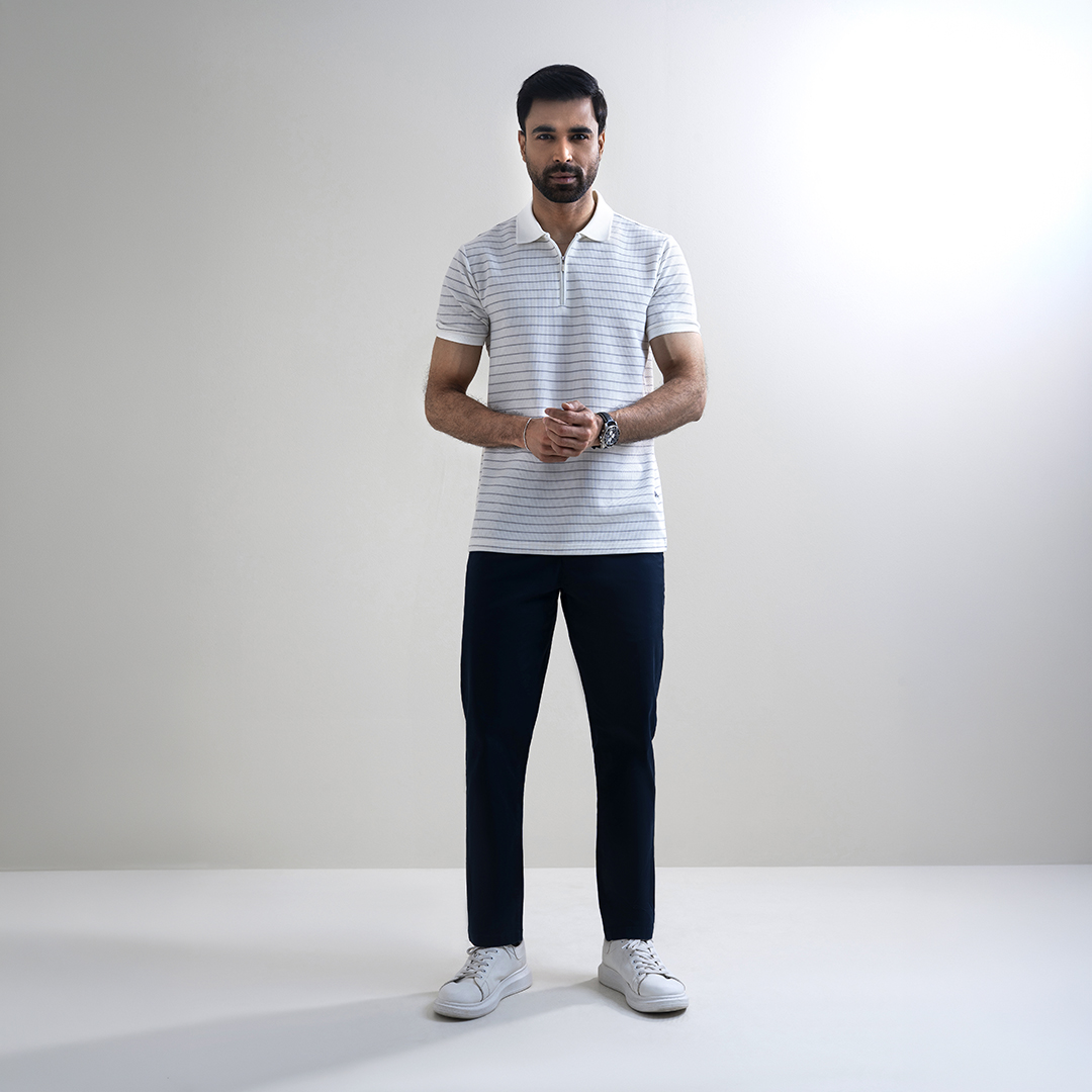 RICHMAN Men’s White Color Stripe Polo Shirt